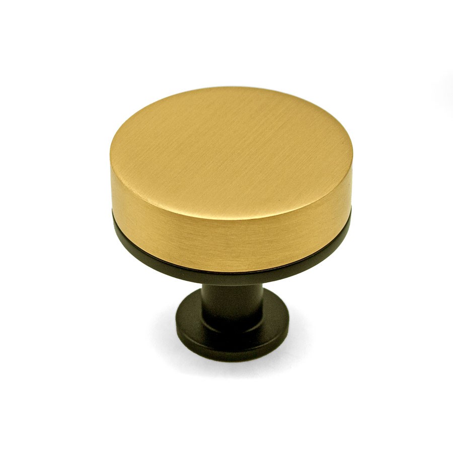 Ручка кнопка 11.4170.24.12, материал Латунь Пластик, цвет Чёрный, отделка Золото Черный, 28*d=30 мм